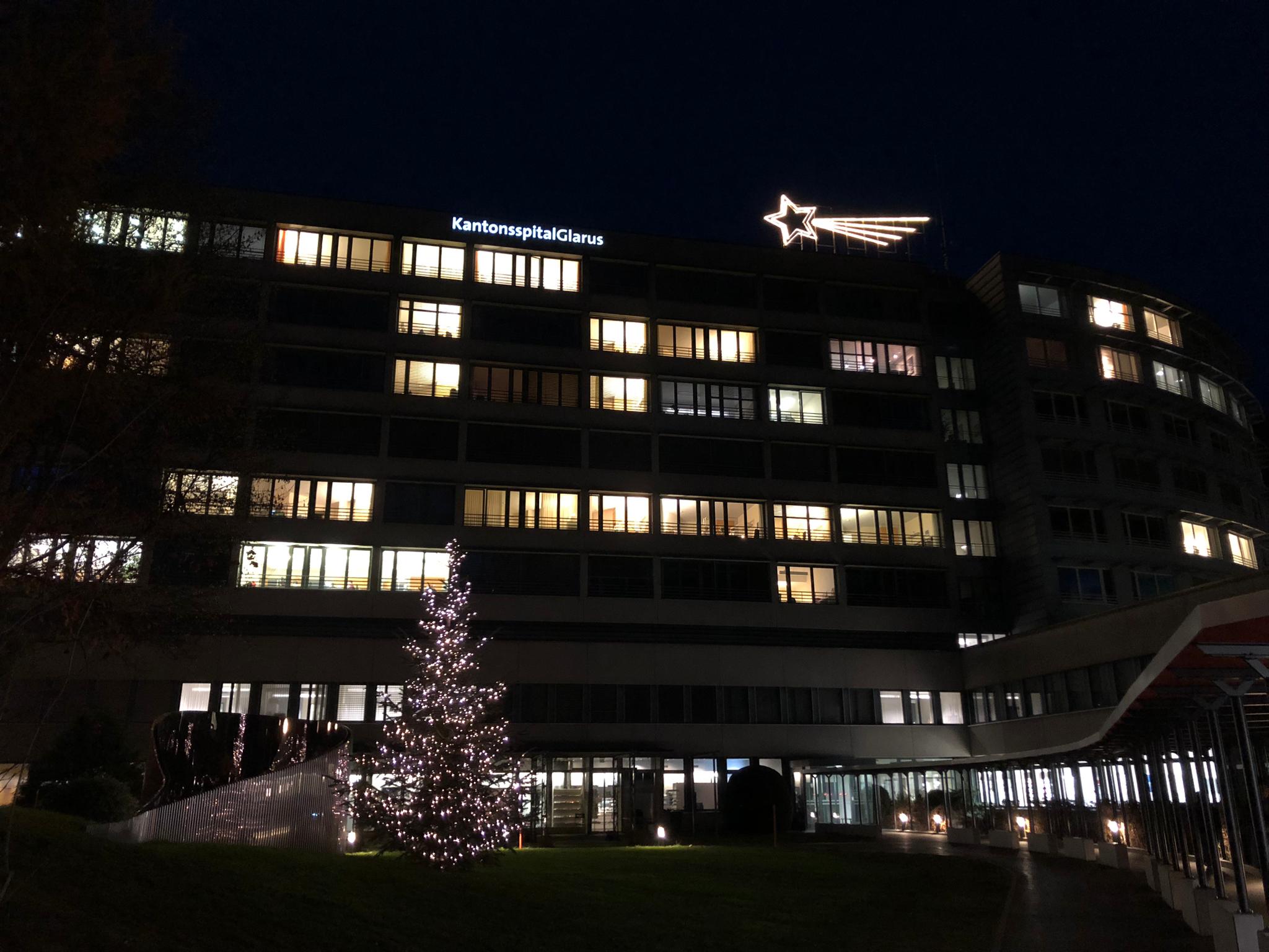 Bei der Strommangellage vor zwei Jahren stand der Stern gar nicht auf dem Spitaldach. Es gab aber tatsächlich Stimmen im Haus, die sich darüber beschwerten! Also haben wir den Stern in einer Blitzaktion doch noch aufgestellt. In diesem Jahr leuchtet der Stern jetzt schon zum 25. Mal in der Weihnachtszeit, immer vom 1. Advent bis zum Dreikönigstag.